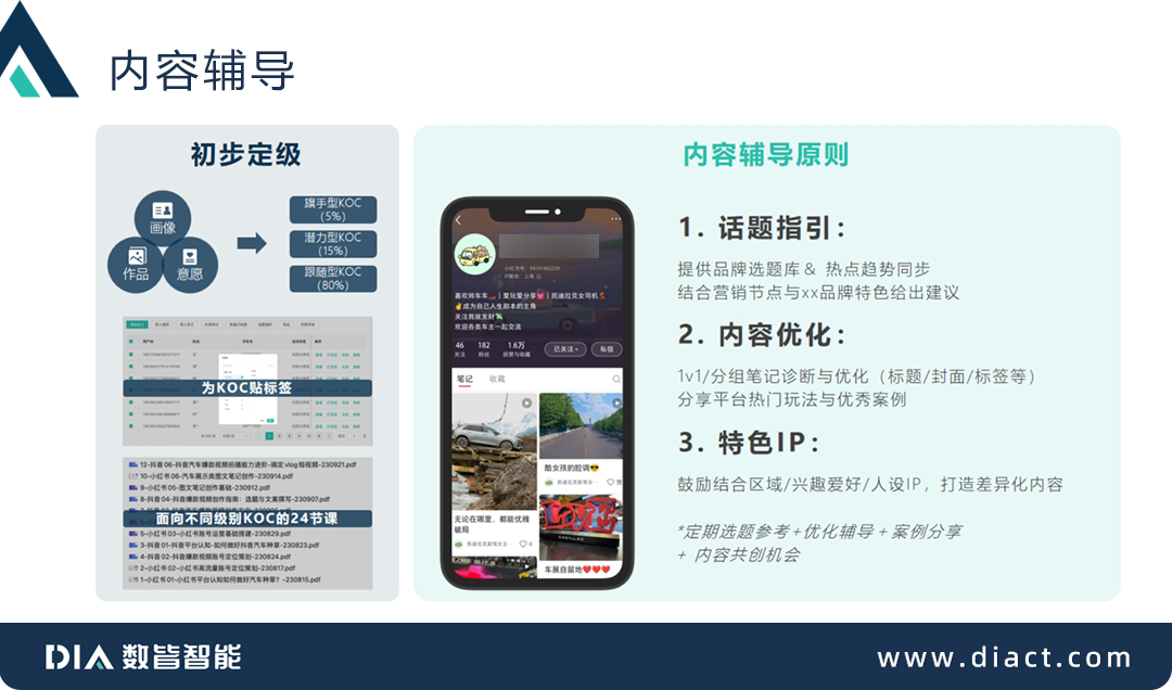 在这些真实且高效的曝光背后,也涌现出一批“自驱型”内容创作者,他们并非一开始就具备专业背景,也没有庞大的粉丝基础,却因为对用车生活的细致观察与真实表达,被品牌发现、被社群接纳,最终成为某汽车垂媒平台上的知名版主。而在这条成长路径的背后,正是某汽车品牌与DIA基于“选育用”策略所共同打造的KOC成长机制,让每一次表达都更有方向,每一次任务都更有价值。