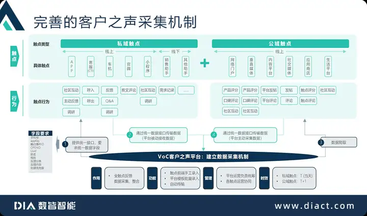 在客户体验成为企业核心竞争力的今天,触点已经远远超越了销售和服务的单一场景,延伸至用户全生命周期的方方面面。触点可以大致分为两类:公域触点和私域触点。两者在数据特征和价值上各有侧重,决定了其在客户之声管理中的不同作用。